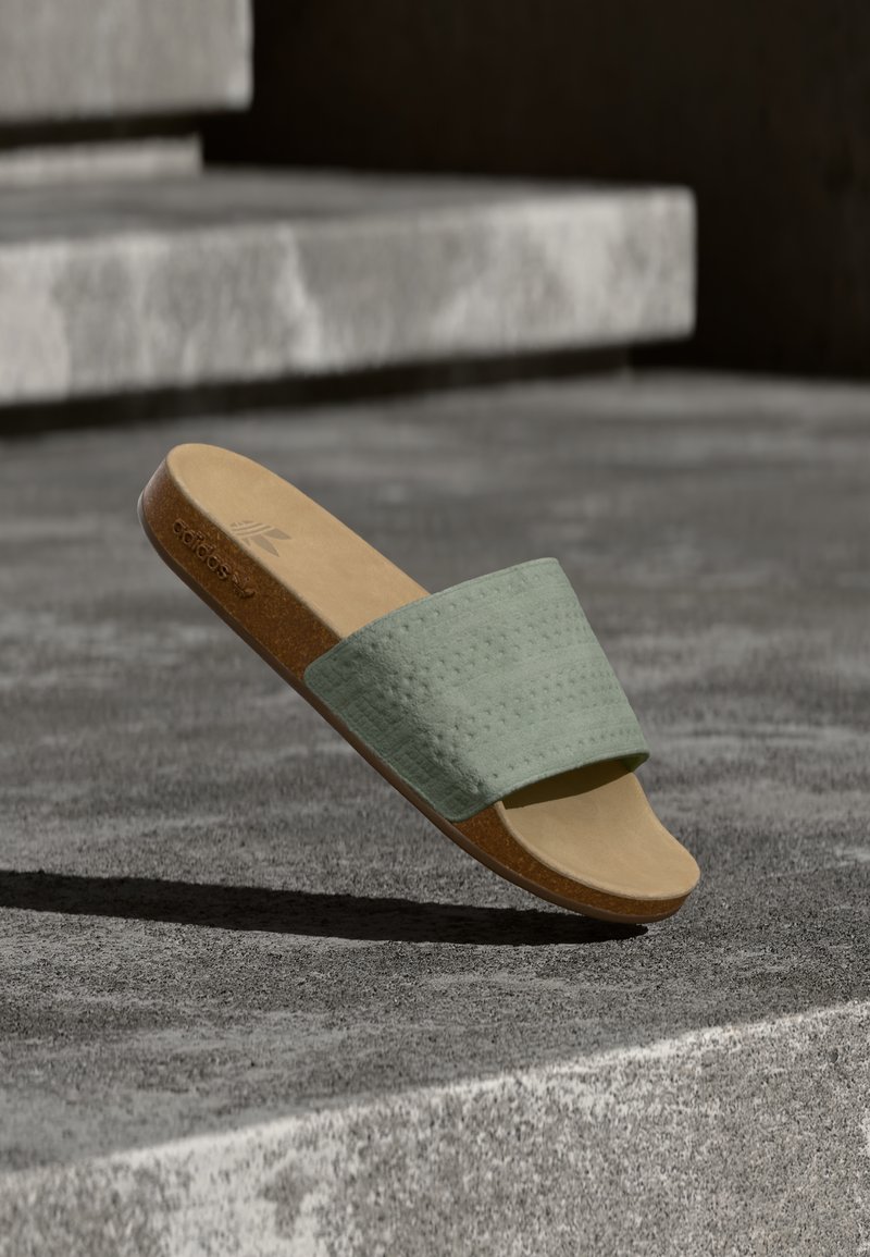 ADILETTE UNISEX - Μιουλ - silver-coloured green/cardboard