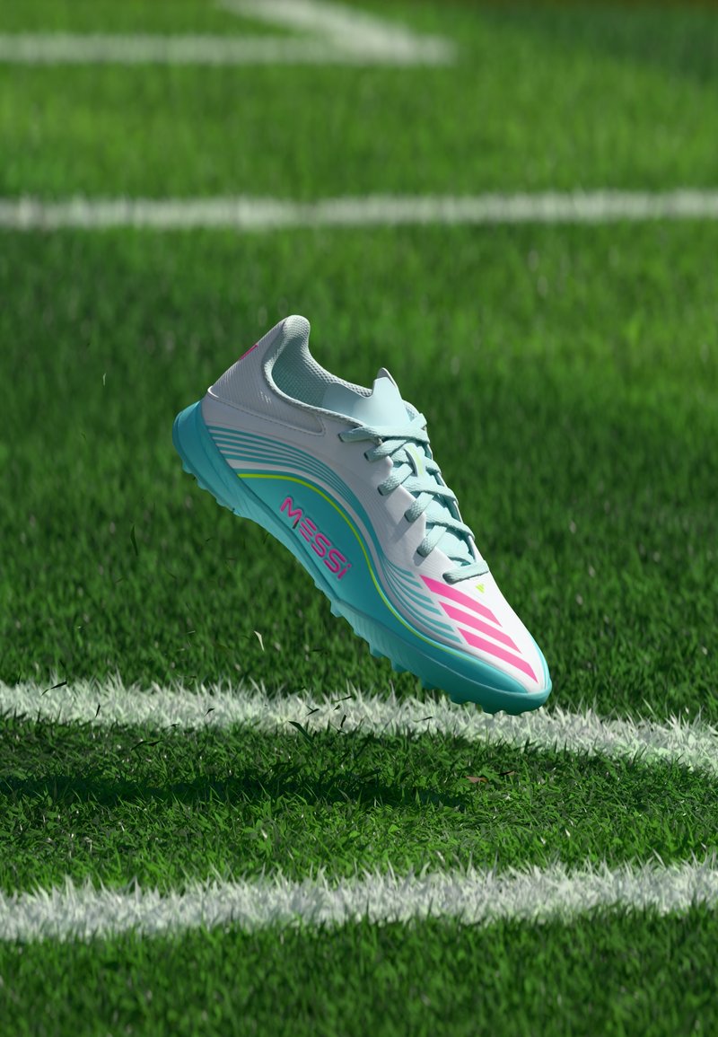 F50 MESSI LEAGUE TURF KIDS UNISEX - Μπότες ποδοσφαίρου για χλοοτάπητα - footwear white/lucid pink/flash aqua