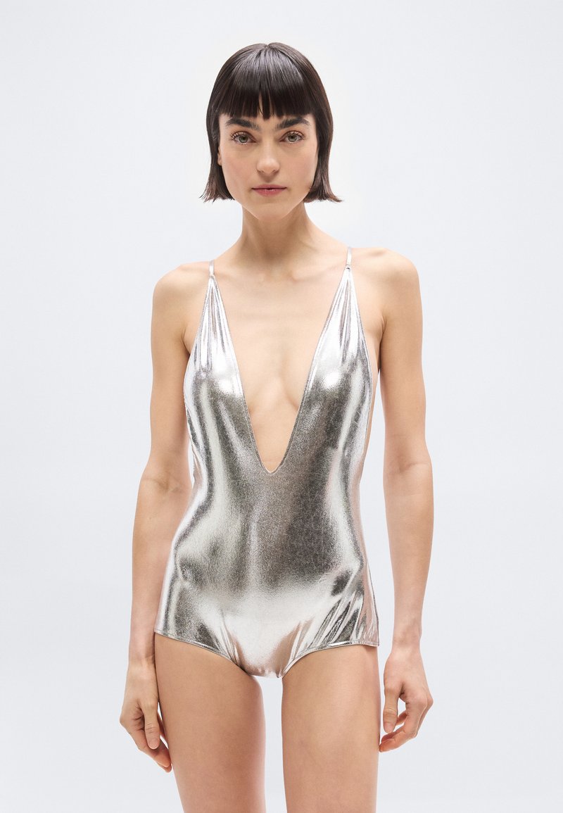 METALLIC V NECK SWIMSUIT - Μαγιό - silver-coloured