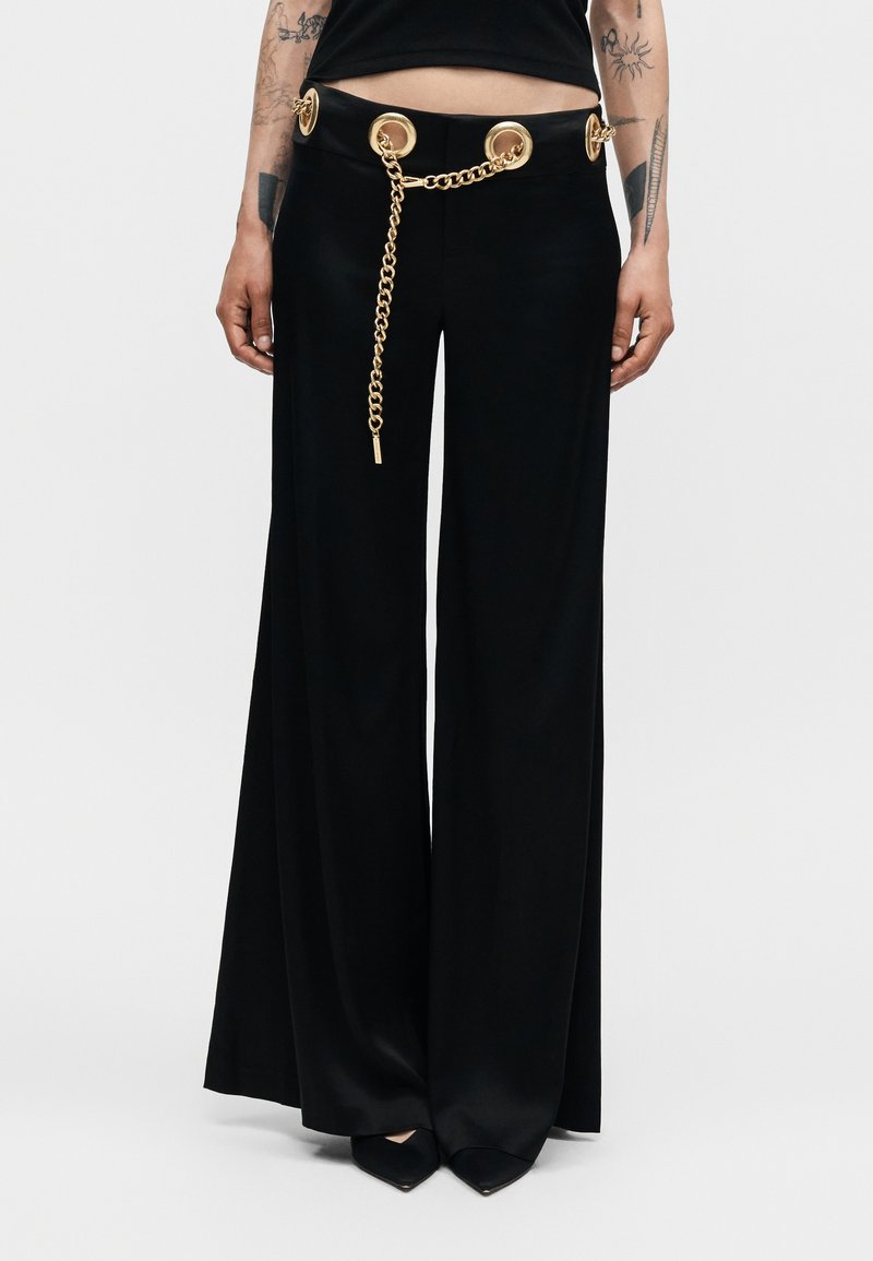 WIDE LEG PANT WITH CHAIN - Παντελόνι - black