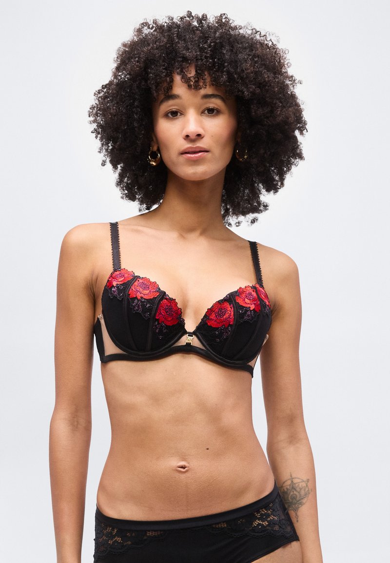 CAGED ROSE PADDED PLUNGE - Σουτιέν Balconette - black/red