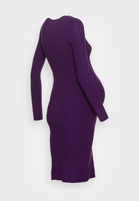 V AUSSCHNITT MINI BODYCON RIPP STRICKKLEID - Φόρεμα-πουλόβερ - purple