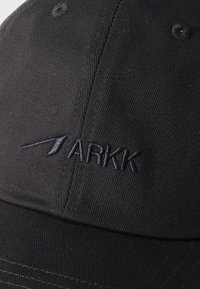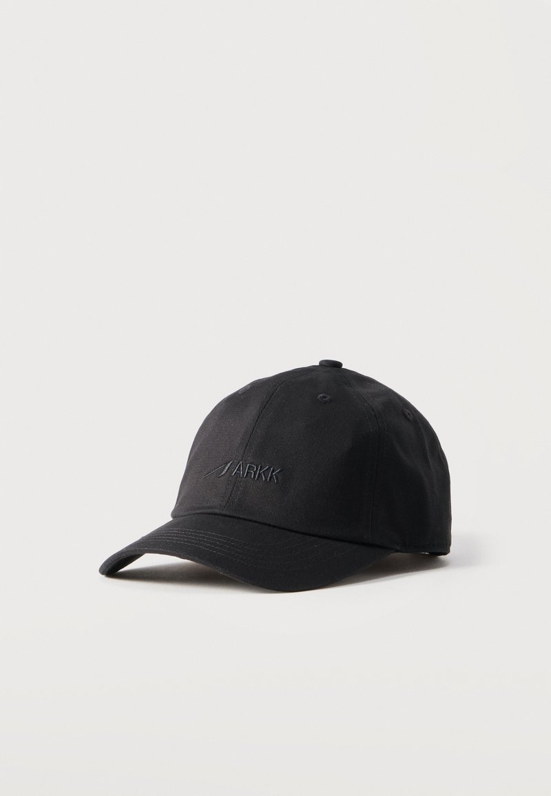 Μαύρο καπέλο μπέιζμπολ με κυρτή ρηχή γείσο, κεντημένο λογότυπο "ARKK" στο μπροστινό μέρος, παρουσιάζεται σε απλό ανοιχτό γκρι φόντο.