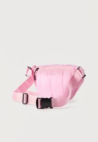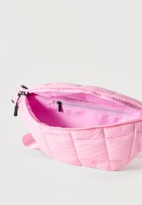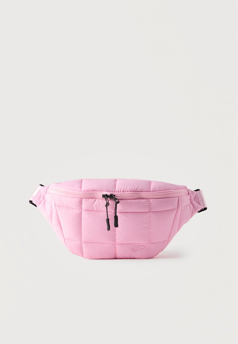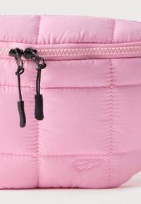 Ροζ γιλέκο μέσης με μαύρα φερμουάρ και ρυθμιζόμενους ιμάντες σε απλό λευκό φόντο.