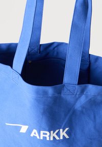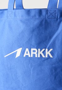 Μπλε τσάντα υφασμάτινη με δύο λαβές, με λευκό λογότυπο ARKK στο κέντρο της εμπρός πλευράς πάνω σε μια απλή φόντο.