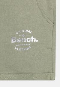 Ελιές πράσινα χαλαρά σόρτς με κορδόνι στη μέση, πλαϊνές τσέπες και λευκό λογότυπο "Original Bench Clothing" στο μπροστινό δεξί πόδι.