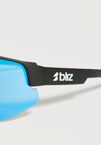 Αθλητικά γυαλιά ηλίου με μαύρο πλαίσιο και μπλε καθρεπτιστικούς φιμέ περιμετρικούς φακούς, με ρινικά στηρίγματα και το λογότυπο «bliz» στους βραχίονες και τους φακούς.