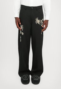 BOTANIC BEAD EMBROIDERED RELAXED PANTS - Παντελόνι - black