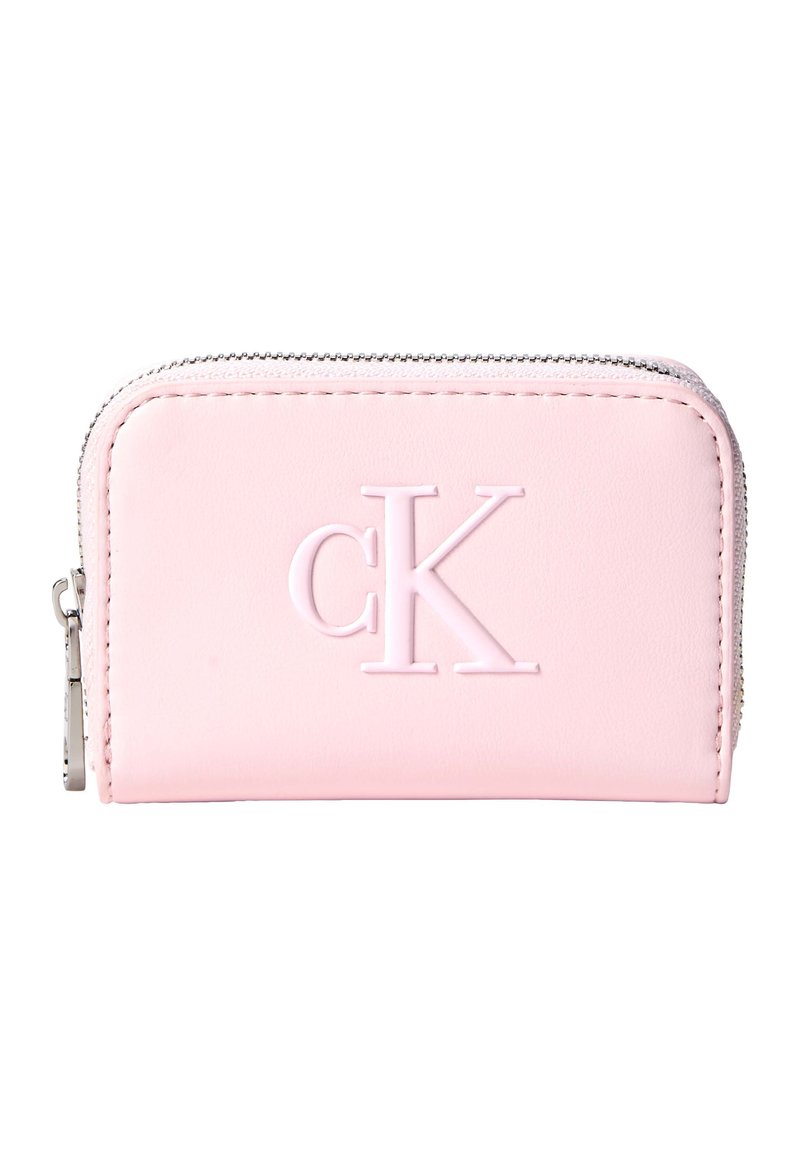 Φουξ γυναικείο πορτοφόλι από δέρμα με φερμουάρ, με ανάγλυφο λογότυπο "cK" στο κέντρο της μπροστινής πλευράς, ασημένια τσέπη για φερμουάρ στην αριστερή πλευρά.