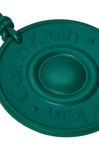 Στρογγυλό μπρελόκ από τυρκουάζ δέρμα με ανάγλυφο το κείμενο «Calvin Klein», διαθέτει λουράκι από δέρμα σε σχήμα θηλιάς για προσάρτηση.