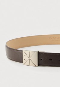 EMBLEM PLAQUE SAFFIANO - Ζώνη για επίσημη ένδυση - dark brown/brushed nickle-coloured