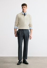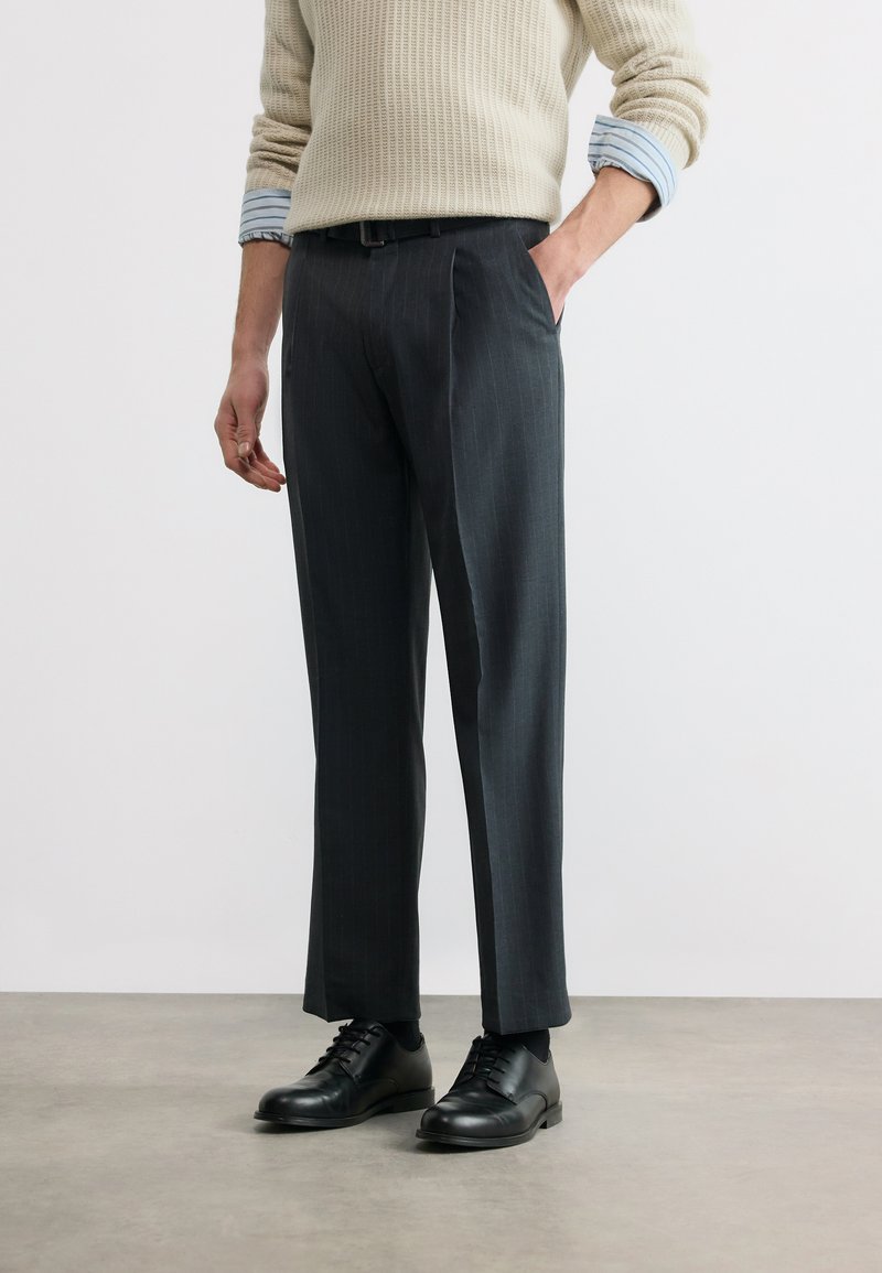 STRAIGHT PINSTRIPE BELTED - Παντελόνι - charcoal heather