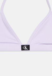 Σετ μπικίνι Calvin Klein ανοιχτού μωβ χρώματος με ρυθμιζόμενο τοπ halter και ταιριαστά σλιπ χαμηλής μέσης, και τα δύο με μαύρες ετικέτες λογότυπου.