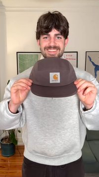 Σκόνινο μωβ καπέλο πέντε πάνελ με επίπεδη γείσο και λευκή εύκολη ετικέτα Carhartt στο μπροστινό μέρος, σε απλό ανοιχτό φόντο.
