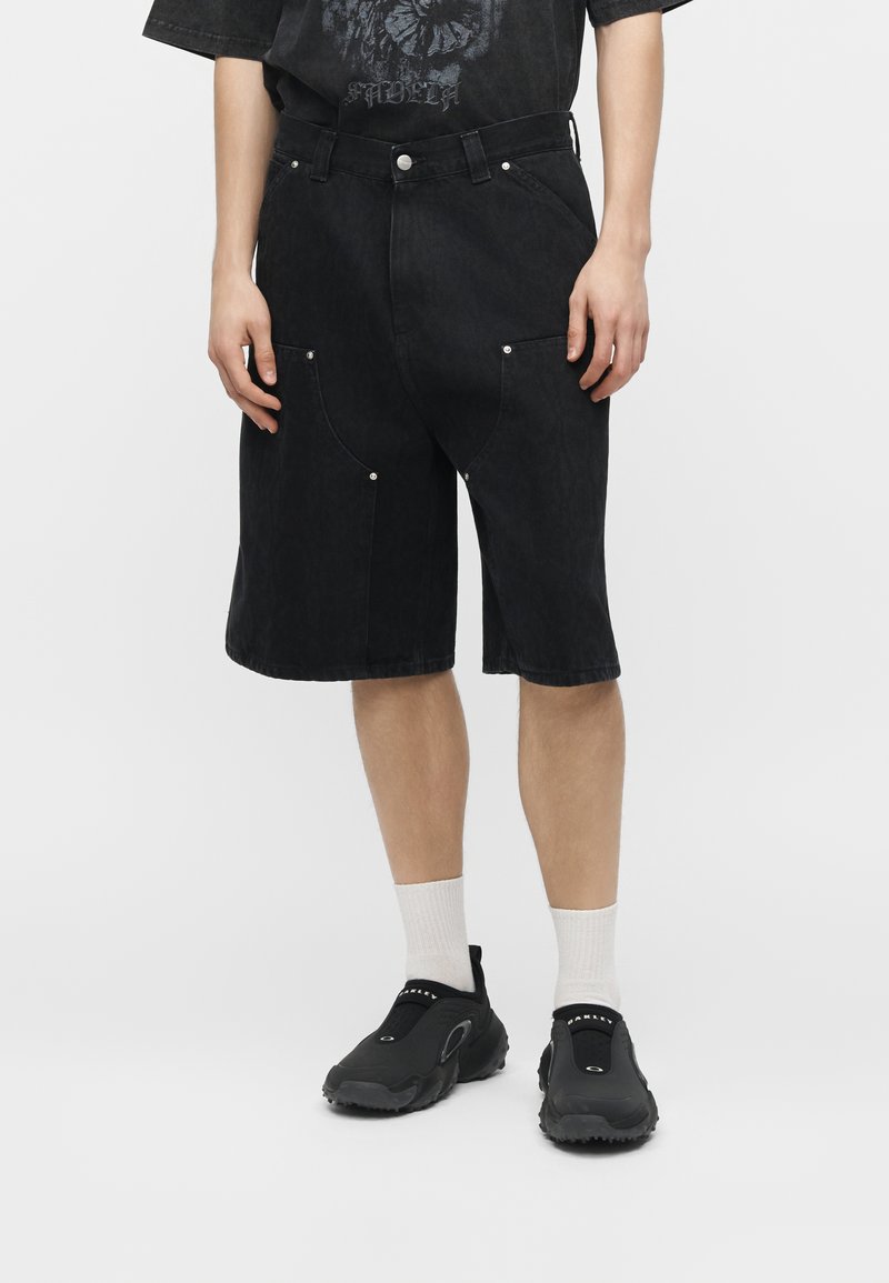 DOUBLE KNEE SMKITH - Τζιν σορτς - black heavy stone wash