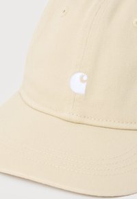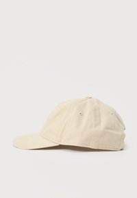 Μπεζ βαμβακερό καπέλο μπέιζμπολ με κυρτή γείσο και μικρό λευκό λογότυπο μπροστά, απεικονιζόμενο σε απλό ανοιχτό φόντο.