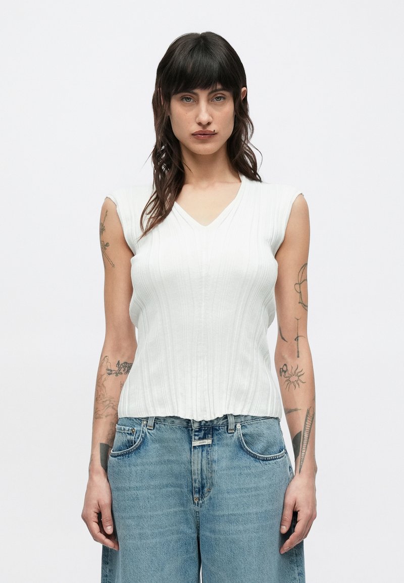 V NECK SHORT SLEEVE - Μπλούζα - ivory