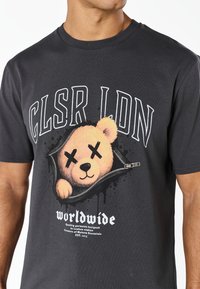 ZIPPER TEDDY TEE - Μπλουζάκι με στάμπα - charcoal