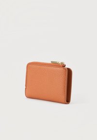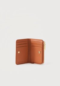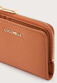 Μικρό πορτοφόλι από δέρμα ταμπά με υφή, με χρυστό φερμουάρ και λογότυπο "COCCINELLE" ανάγλυφο σε χρυσό στην πρόσοψη.
