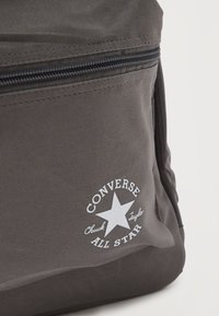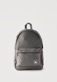 Γκρι σακίδιο πλάτης Converse All Star με μπροστινή τσέπη με φερμουάρ και κορυφαία λαβή μεταφοράς σε μονόχρωμο ανοιχτό φόντο.