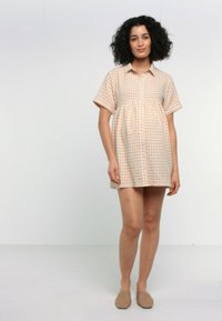 MATERNITY FRIENDLY LOOSE SHORT SLEEVE DRESS - Φόρεμα ημέρας - ginny gingham brown taupe