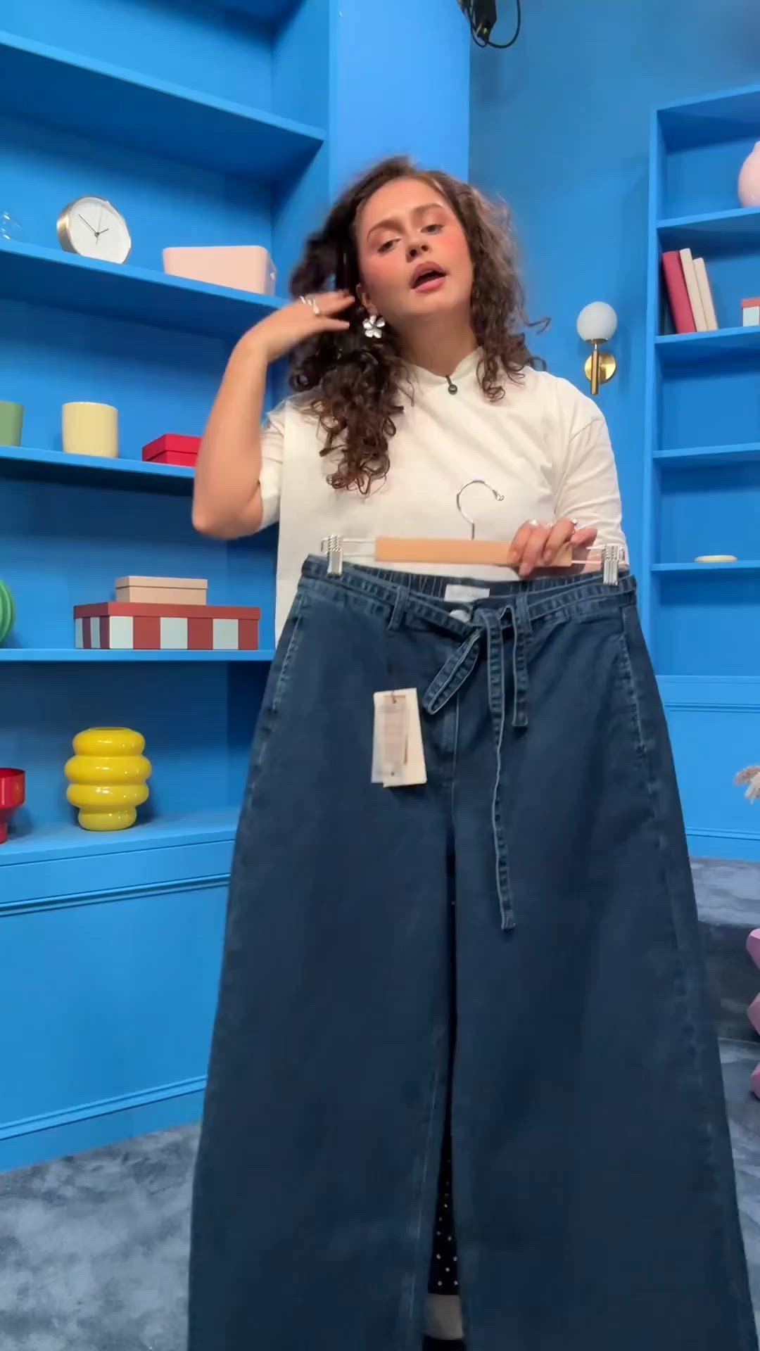 STRETCH HIGH RISE - Wide leg - dark blue denim