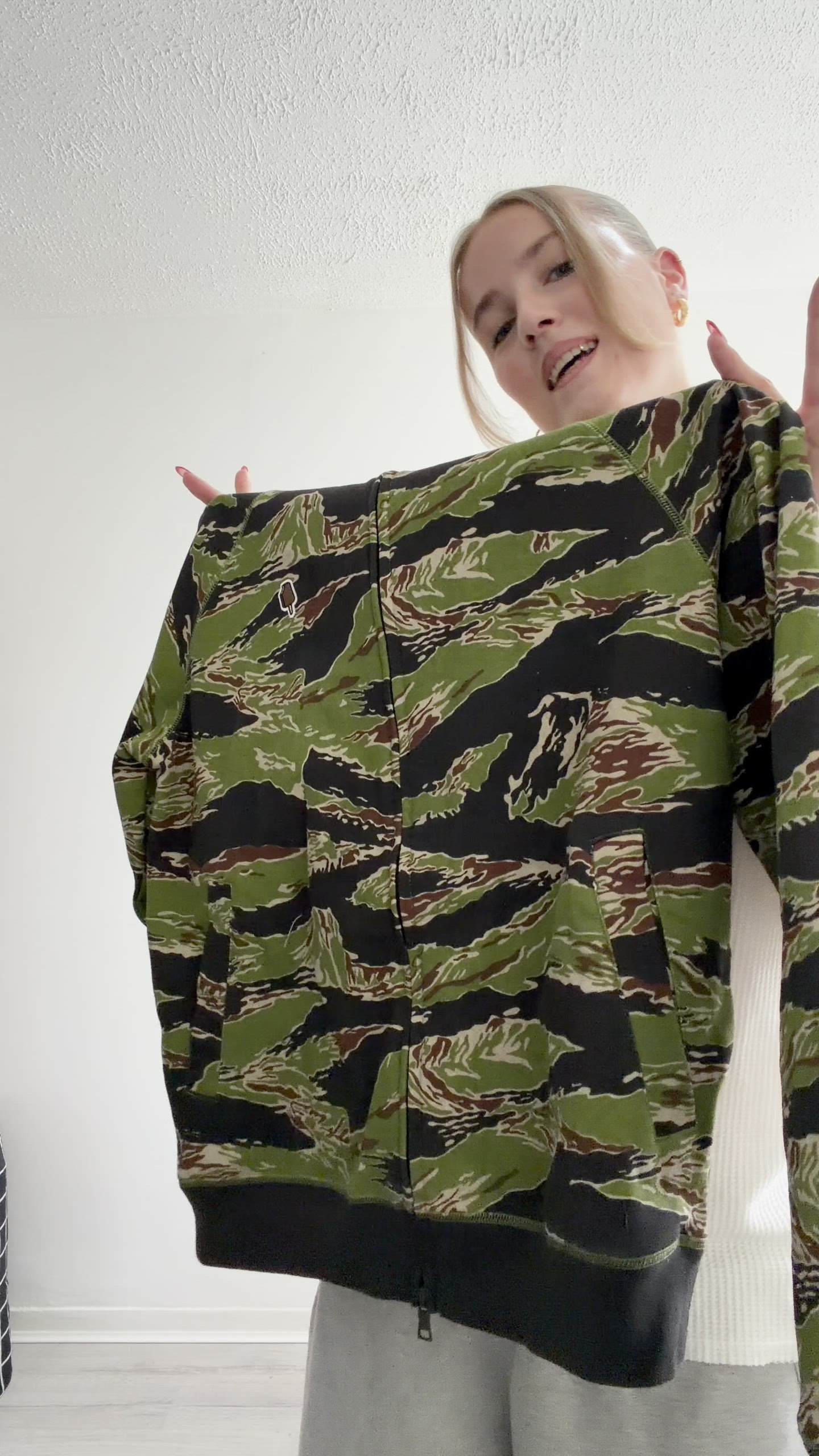 SMILEY TIGER STRIPE FULL ZIP THROUGH HOOD - Φούτερ με φερμουάρ - green