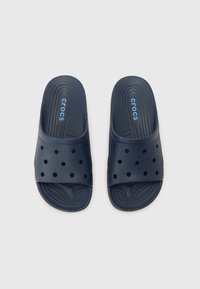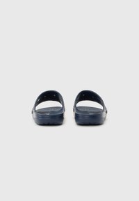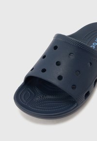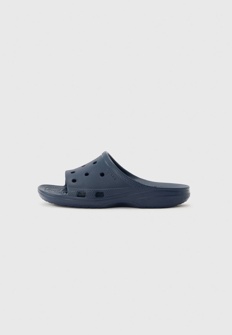 Παντόφλα από καουτσούκ σε σκούρο μπλε ναυτικό χρώμα με οπές αερισμού και υφή στη σόλα, εμφανιζόμενη σε προφίλ σε ουδέτερο φόντο.