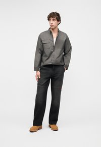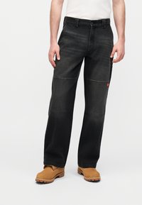 DOUBLE KNEE WORK - Τζιν χαλαρής εφαρμογής - black wash faded