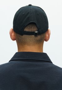 Μαύρο καπέλο με πορτοκαλί λογότυπο "W" και καμπυλωτό γείσο. Το μοντέλο φοράει σκούρο μπλε υφασμάτινο πουκάμισο πάνω από ένα ανοιχτόχρωμο πουλόβερ με στρογγυλή λαιμόκοψη.