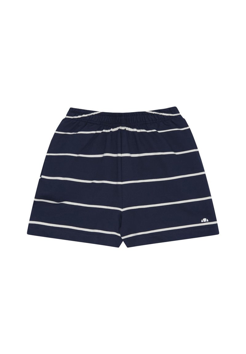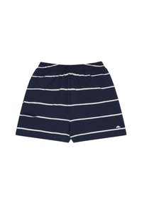 Σορτς σε ναυτικό μπλε με λευκές οριζόντιες ρίγες και ελαστική μέση, με μικρό λευκό λογότυπο στο κάτω δεξί πόδι.