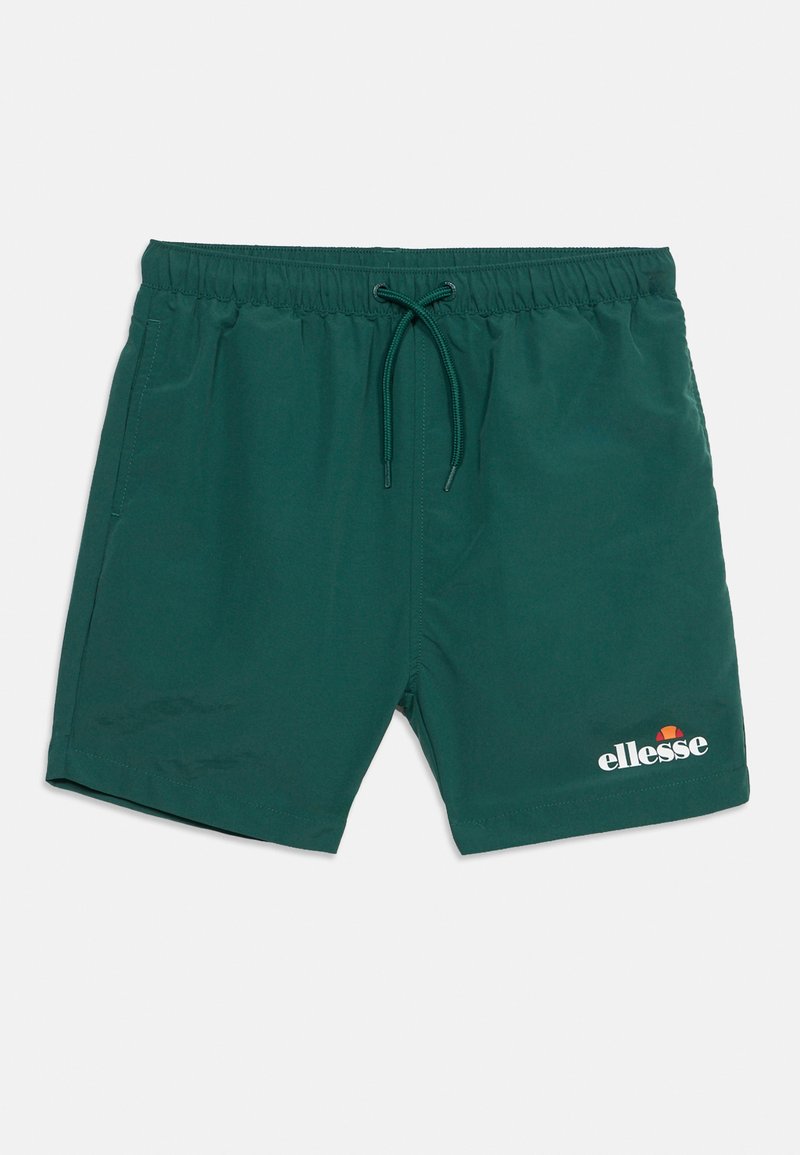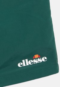 Σκούρα πράσινα μαγιό σορτς με ελαστική ζώνη μέσης και κορδόνι, πλαϊνές τσέπες και λευκό λογότυπο Ellesse στο αριστερό πόδι.