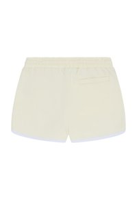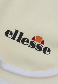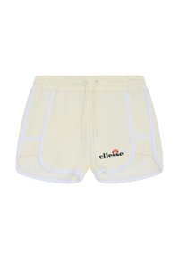 Αθλητικό σορτς κρεμ χρώματος με λευκή επένδυση, ελαστική μέση με κορδόνι και μαύρο λογότυπο ellesse στην μπροστινή αριστερή πλευρά.