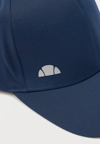 Σκούφος του μπέιζμπολ σε σκούρο μπλε χρώμα με καμπύλη γείσο και κουμπί στην κορυφή, τοποθετημένος σε απλό ανοιχτό γκρι φόντο.