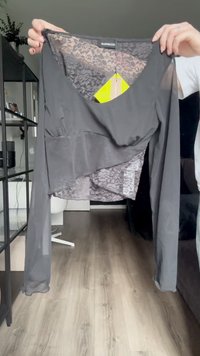 Μαύρο, μακρυμάνικο cropped τοπ με διαφανές δίχτυ και δαντελένια επικάλυψη, με στρογγυλή λαιμόκοψη και εφαρμοστή σιλουέτα.