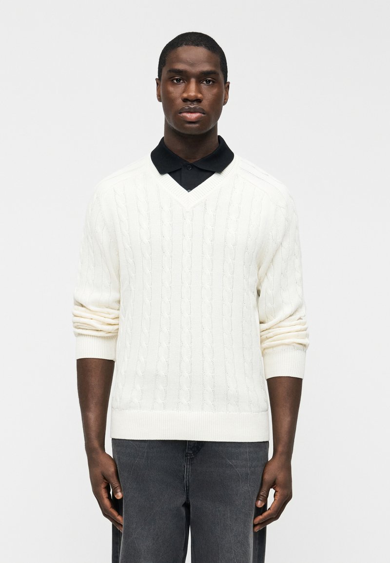 BRAIDED V NECK SWEATER - Πουλόβερ - calico white