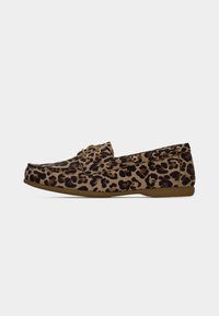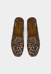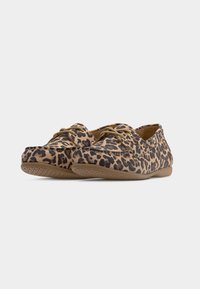 Παπούτσι με λεοπάρ σχέδιο, επίπεδη, στρογγυλή μύτη, απαλό υλικό και ταμπά κορδόνια. Διαθέτει χαμηλό προφίλ και υφή στο εξωτερικό, ευέλικτο πέλμα.