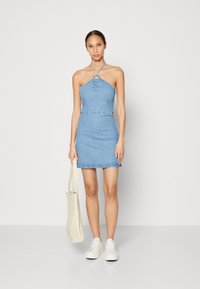 HALTER CUT OUT - Τζιν φόρεμα - medium wash