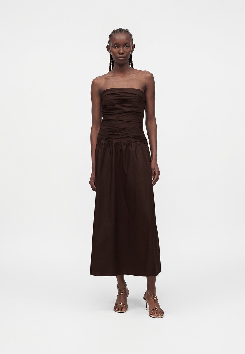 STRAPLESS DRAPED BODICE MAXI DRESS - Μάξι φόρεμα - terra brown
