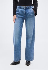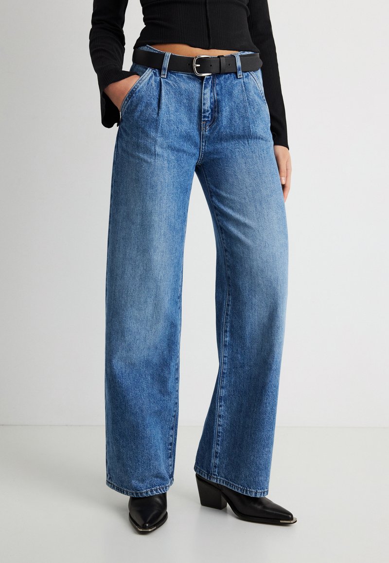 PLEATED SLOUCHY JEANS - Wide leg - mid blue