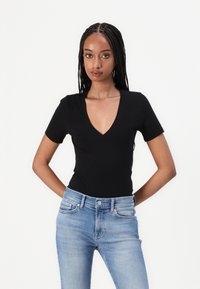 SUPER STRETCH DEEP V - Βασικό μπλουζάκι - black