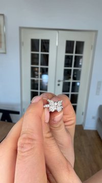 Ασημένιο δαχτυλίδι με σχέδιο πεταλούδας διακοσμημένο με μικρούς κρυστάλλους και μαργαριταρένιες λεπτομέρειες στα φτερά και τη βάση.
