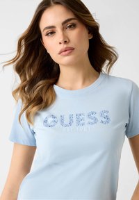 SS CN GUESS STUDS SCRIPT TEE - Μπλουζάκι με στάμπα - aerial blue