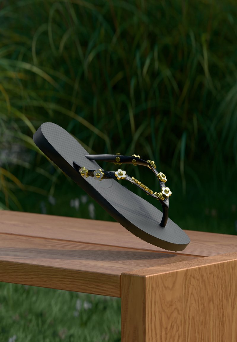 SLIM STYLISH - Σανδάλια τύπου T - black/golden-coloured