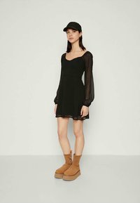 RUCHED SWEETHEART DRESS - Φόρεμα ημέρας - SOLID BLACK WTH DOT TEXTURE