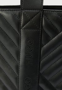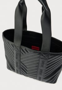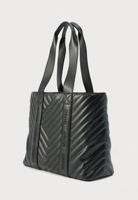 Μαύρη καπιτονέ τσάντα ώμου με μοτίβο ζιγκ ζαγκ, διαθέτει επίπεδες λαβές και ανάγλυφη επωνυμία στις πλευρές. Κατασκευασμένη από λείο δέρμα.