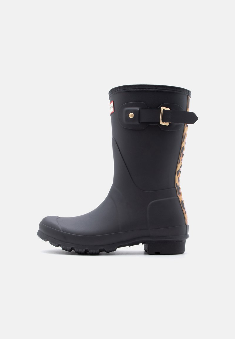 WOMENS SHORT LEOPARD BACKSTRAP - Γαλότσες - black