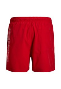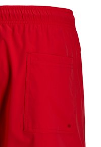 Κόκκινα μαγιό με ελαστική μέση και κορδόνι, με λευκή επιγραφή "JACK & JONES" κάθετα στο δεξί πόδι.