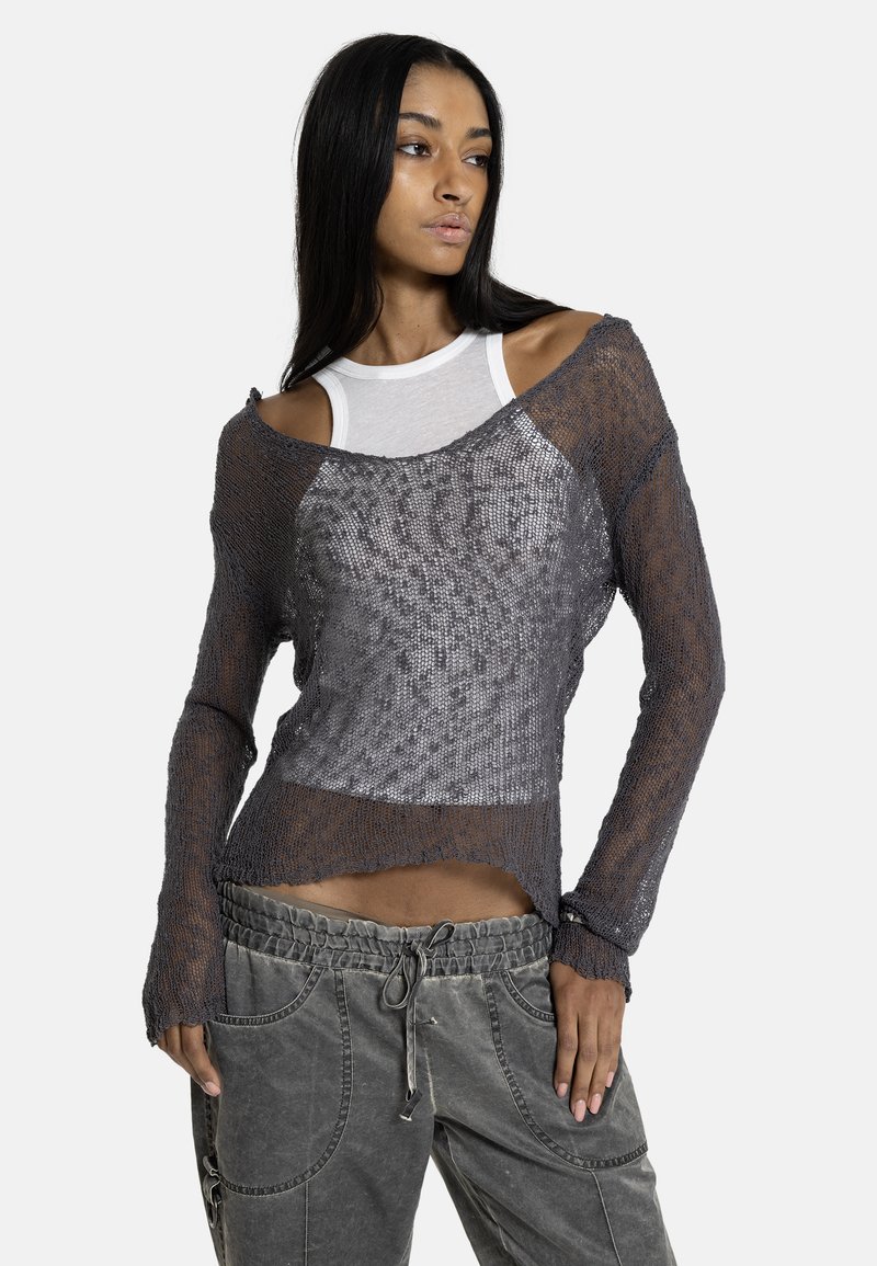 NAIA LOOSE KNIT HOODED TOP - Πουλόβερ - grey