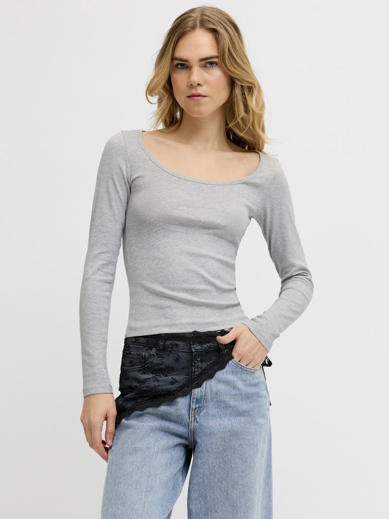 JXSTAR U NECK - Μπλούζα με μακριά μανίκια - light grey melange